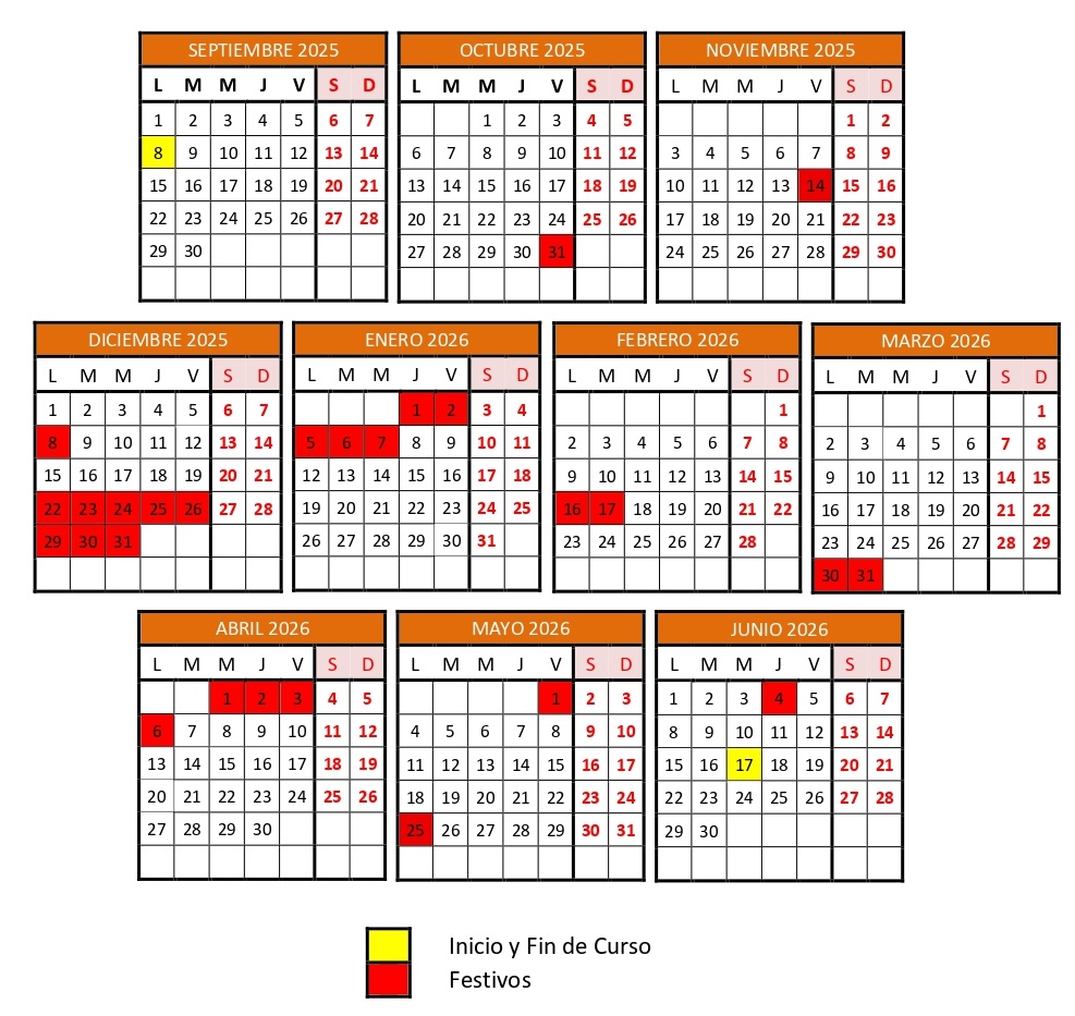 El calendario escolar se publica cada año y está disponible para consulta pulsando aquí.